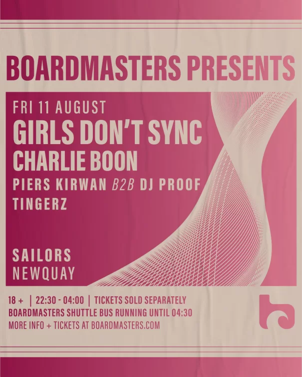 Boardmasters Presents then lands at Sailors for Friday night’s party, with Girls Don’t Sync – the female DJ collective made up on Matty Chiabi, G33, Sophia Violet and Hannah Lynch who’ve taken the scene by storm with previous sets for Boiler Room and more. Known for their legendary parties, the army of female DJs is set to raise the roof. They’ll be joined by Cornwall’s own Charlie Boon who is locked, loaded and ready to take the party into the early hours, plus support from local favourites Piers Kirwan & DJ Proof for a special B2B.