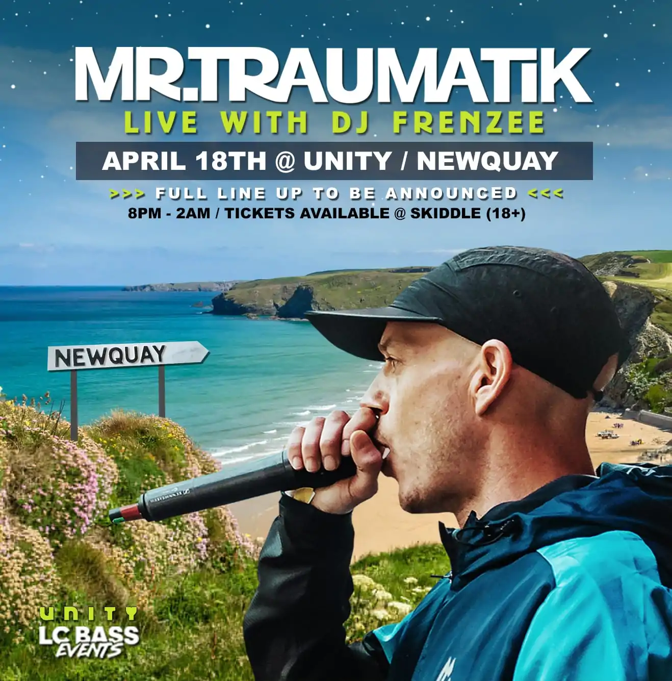 LC BASS EVENTS PRESENTS MR TRAUMATIK UK TOUR ARRIVES IN NEWQUAY @UNITY BAR STEP INTO A MULTIDIMENSIONAL EXPERIENCE THIS EASTER